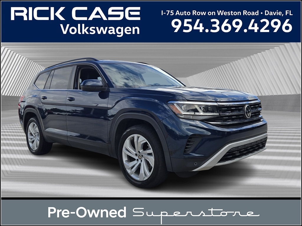 Blue Metallic 2022 Volkswagen Atlas 3.6L V6 SE w/Technology FWD 8-Speed Automatic with Tiptronic 3.6L VR6